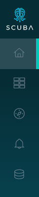 The Navigation bar is comprised of the icons on the left side of the Scuba UI. Use these icons to access features such as boards, signals, and the data dictionary.