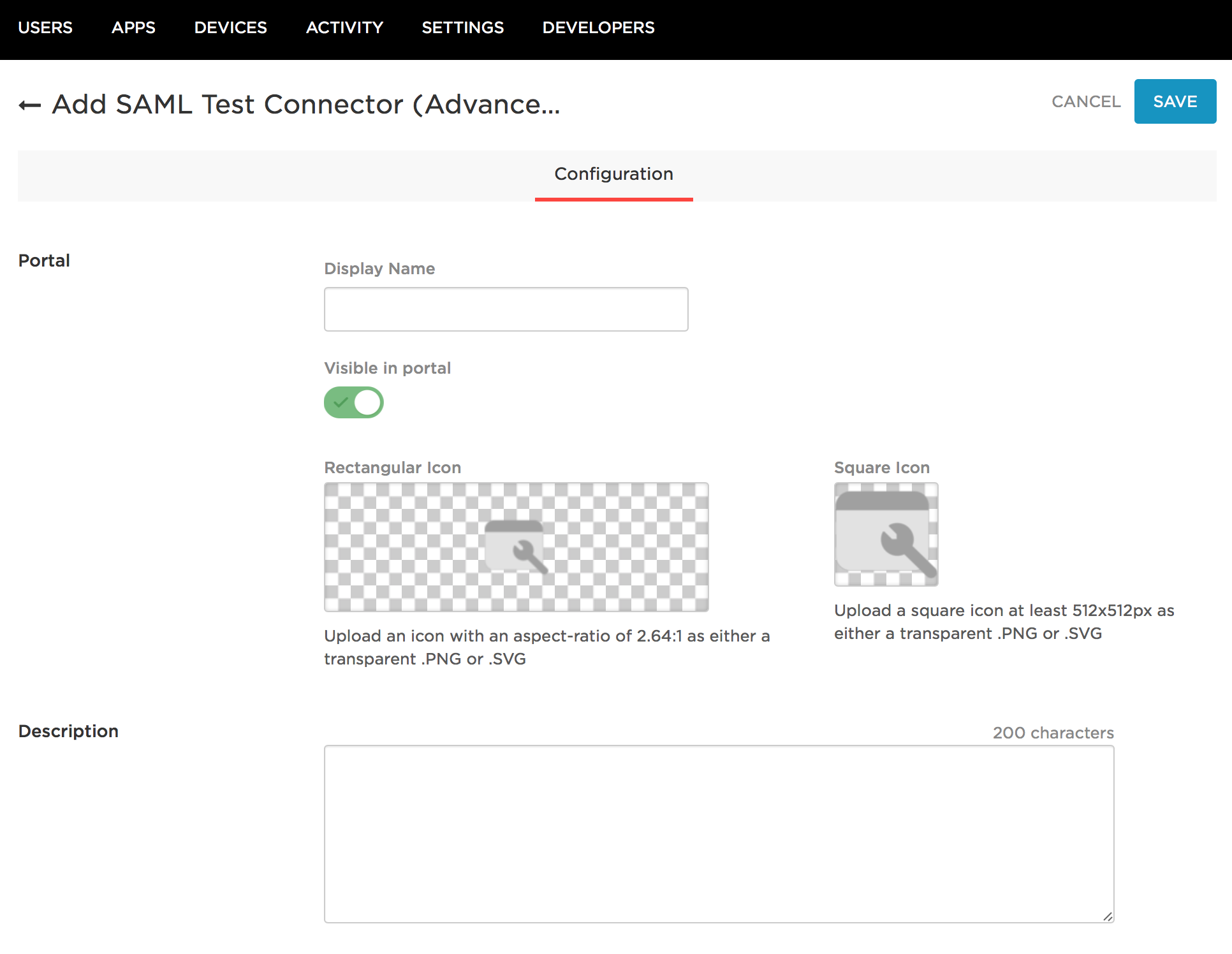 4. On the Configuration screen, give your OneLogin Scuba application any name you want then click Save.